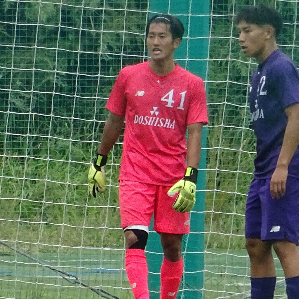 前期は第6節から4勝2分と6試合負け無しだった同大でしたが後期に入り第1節は大院大を相手にドロー。第2節は大経大に敗北とつまづいてしまいました。今節はしっかりと勝利したいところ。フォーメーションは4-4-2。後期に入って2戦は#31栗村真尋(4年・海星高)がゴールマウスを守っていましたが今節はGK#41黒瀬理仁(1年・長崎U-18)。4バック右から#5安井凌羽(4年・同志社香里高)、#20吹田航晟(2年・川崎U-18)、#2鈴木良(4年・松山北高)、#29鈴木琉世(2年・札幌U-18)。ダブルボランチに#36室勇志(4年・大阪桐蔭高)と#24仲田堅信(2年・米子北高)。右SHに#11馬場啓太朗(4年・大阪桐蔭高)、左SH#14中山織斗(3年・國學院大久我山高)。2トップは#10鹿取勇斗(4年・桐光学園高)と#9野頼駿介(3年・桐光学園高)です。