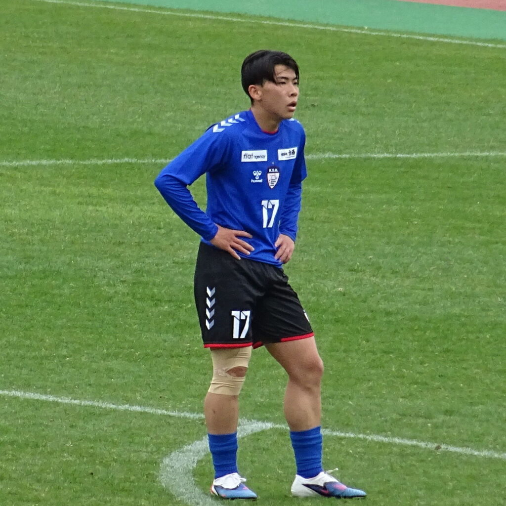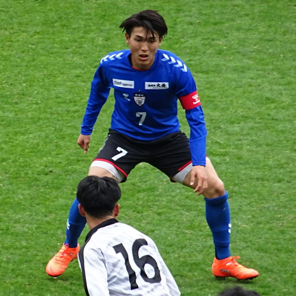 京産大のフォーメーションもいつも表記を迷いますが4-1-3-2としときます。GKは#1中原碧琉(4年・広島ユース)。4バック右から#3滝口晴斗(4年・広島ユース)、#2沖野眞之介(2年・高川学園高)、#4小野成夢(4年・愛媛U-18)、#20西川宙希(2年・C大阪U-18)。アンカーに#7伊藤翼(4年・C大阪U-18)。2列目右から#24森田皇翔(2年・神戸U-18)、#10皿良立輝(3年・C大阪U-18)、#17福永裕也(3年・京都橘高)。2トップは#19太仁紫音(2年・大谷高)と#9妹尾颯斗(4年・広島ユース)です。