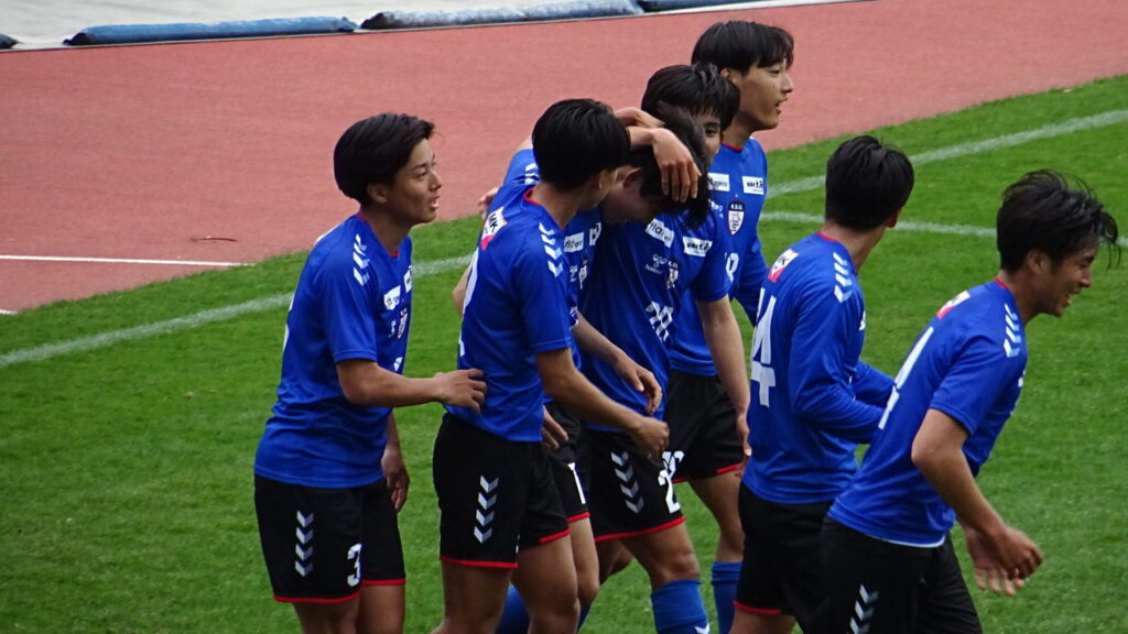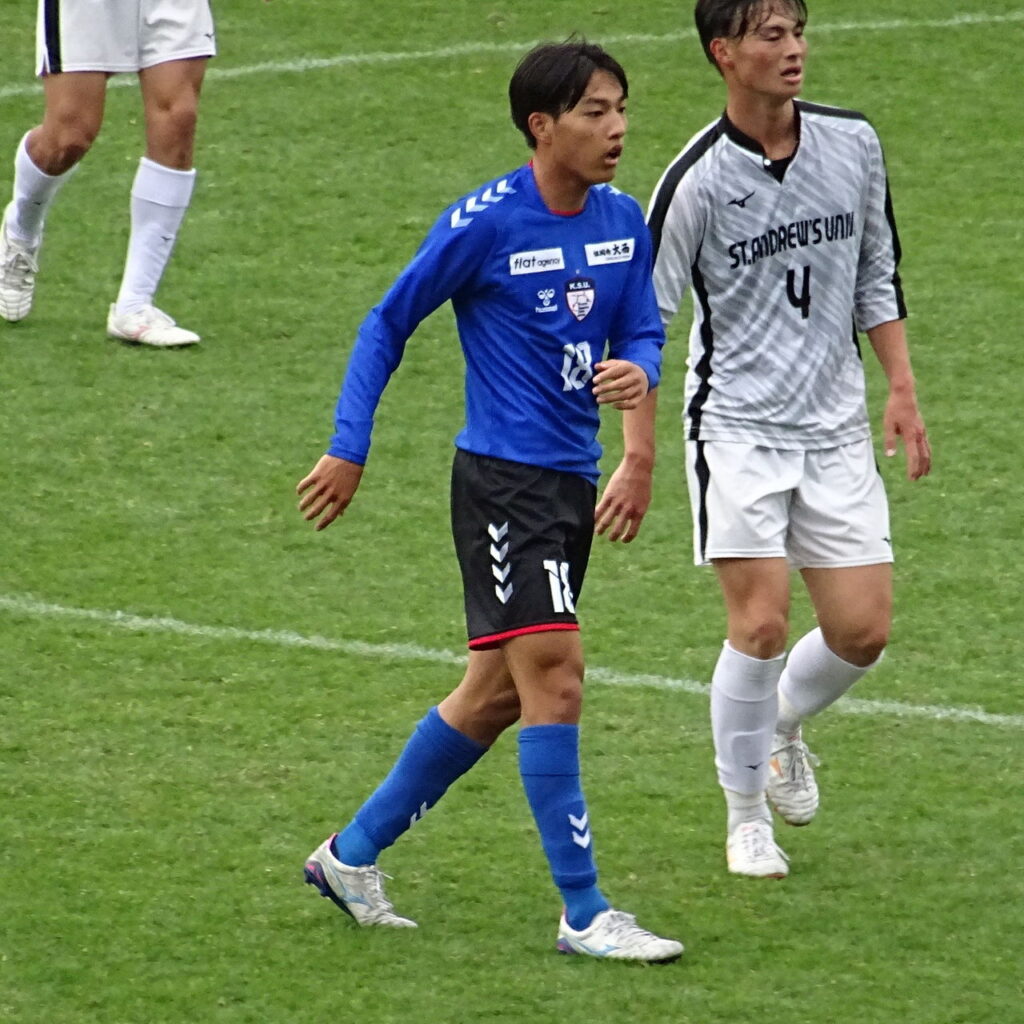 見どころの多い面白い試合でした。前半は京産大が攻勢するも桃山大がよく守ってスコアレスで後半へ。後半も京産大優勢もセットプレーの流れから桃山大が先制。これで勢いづいたかに見えましたが京産大がゴールキックからチャンスをつかみすぐさま同点に。しかしその後も桃山大の少ないタッチでのパスがよく回り何度もゴールに迫ります。しかしこの時間帯に得点できなかったのが悔しいところ。その後、京産大がリズムと取り戻して得点を重ねるという結果になりました。タレント揃いでゴールラッシュとなった京産大ですが、昨年一昨年と活躍を見せた選手がこれから帰ってきて選手層の厚みが増してくると考えると末恐ろしいです。桃山大はこれで3連敗となっています。先制するもすぐに追いつかれたのは痛かったですが、後半は迫力ある攻撃ができていましたしDF陣の個々のプレーも光るものがありました。スタートダッシュした昨季と真逆のリーグ序盤となってしまっていますが粘り強く頑張ってほしいです。